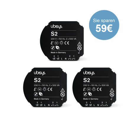 Dieses Starter-Set ermöglicht die intelligente Steuerung von Raumtemperatur, elektrischen Verbrauchern und Rollläden, Markisen, und/oder Jalousien. Der Heizungsregler H1 ist ein intelligentes, batteriebetriebenes Heizkörper-Thermostat mit integriertem Temperaturfühler für Radiatorheizungen und dient der effizienten Raumtemperaturregelung. Die Temperaturregelung erfolgt manuell am Gerät oder per App (z.B. ubisys Smart Home App). Mit dem S2 können Sie zwei beliebige elektrische Verbraucher/Endgeräte (auch Motoren) mit einer konstanten Leistungsaufnahme von jeweils bis zu 500VA schalten. Hochwertige und absolut verschleißfreie Halbleiterschalter (TRIACs) garantieren eine sehr lange Lebensdauer und leises Schalten. Perfekt geeignet für Doppelbeleuchtungen und Doppelschalter. Der J1 verwaltet Ihre Rollläden bzw. Jalousien für Sie. Richten Sie per App Zeitpläne ein und lassen Sie Ihre Rollläden nach Ihrem Tagesrhythmus hoch- und herunterfahren. Integrieren Sie den J1 in Szenen und/oder steuern Sie mehrere Rollläden gleichzeitig mit einer Taste. Die Installation ist schnell und die Einrichtung ebenso.
